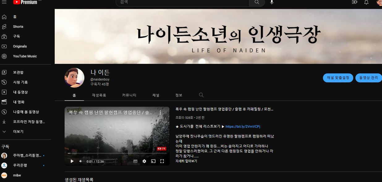 유튜브를 개설하면 자신의 채널이 생성되는데