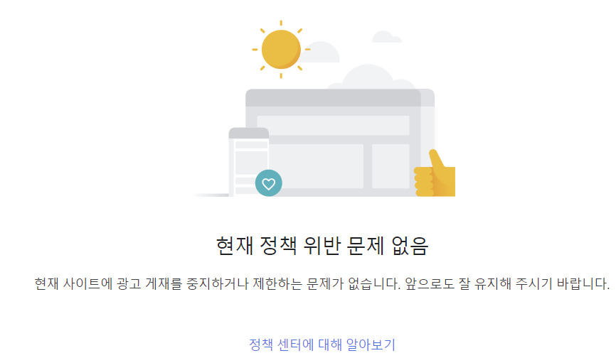 애드센스 정책센터 메뉴에 들어가봐도 문제는 없다.