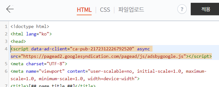 티스토리 설정 스킨편집메뉴에 들어가면 HTML편집이 가능하다.(다 알고있지요?)