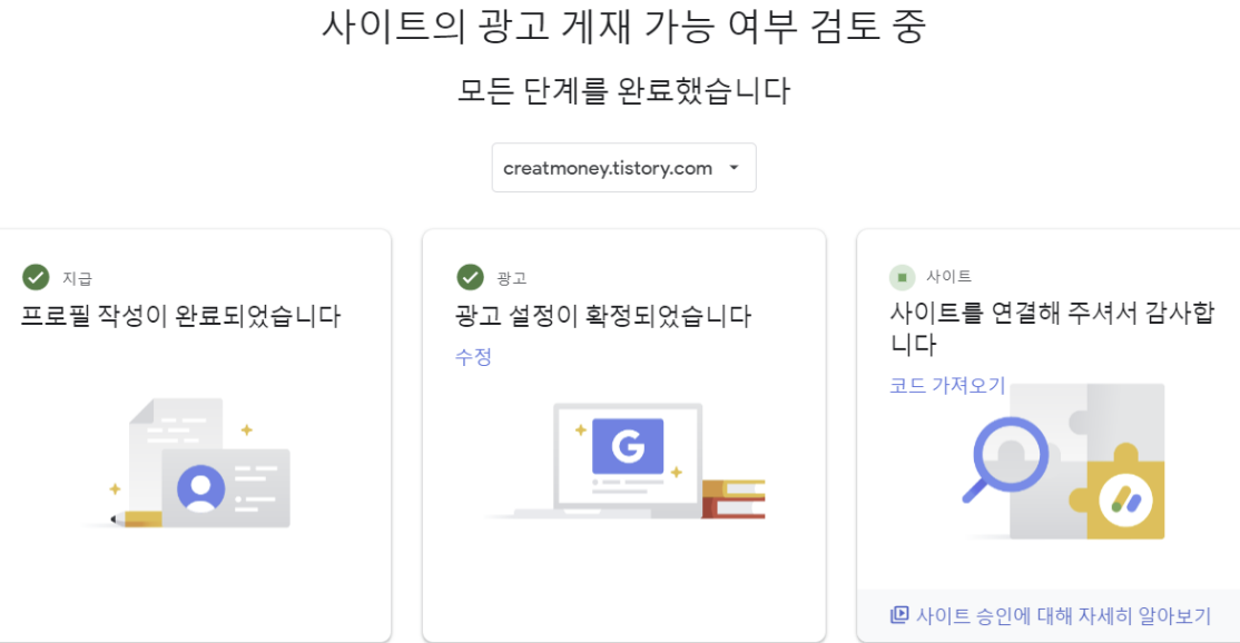 애드센스 광고는 '자동광고' 옵션으로 설정해놓으면 당장 특별히 할 일은 없으나 구글에서 핀번호를 우편으로 보내오면