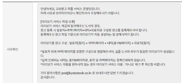 미리보기를 넣을 경우 앞표지+여백1페이지+내지+뒤표지 식으로 구성되어야 한다.